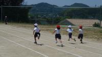 ↓ 50m走です。下八重先生から速く走るコツを教わり、がんばりました。