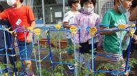 ↓ 今、学校では、グリーンカーテンを準備しています。職員の橋本さんを中心に小学生の教室の横でゴーヤなどが準備されています。