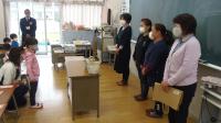 豊野町婦人会から4名の方が来校され、昨年に引き続き、新小学1年生にマスクを入れる袋をいただきました。