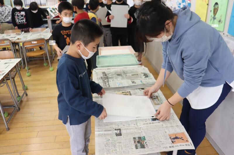 小学2年生は図工で版画に取り組んでいました。「刷り」に入るところです。うまく刷れるかな?