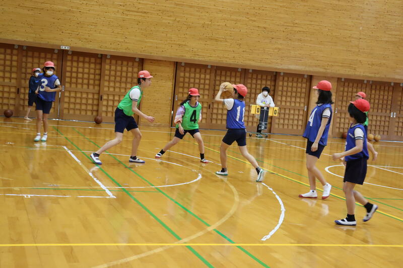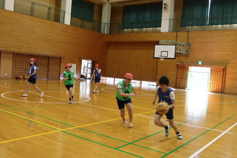 小学6年生は体育でバスケットの試合をしていました。パスをつないでシュートのチャンスを狙います。ドリブルもパスもどんどん上達します。子どもたちってすごいですね!