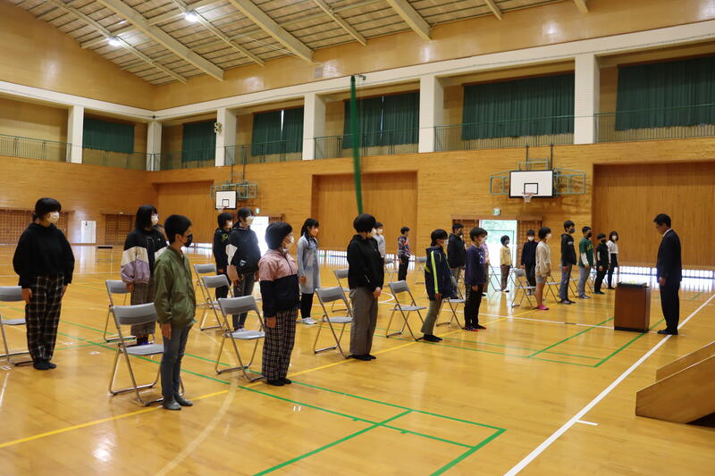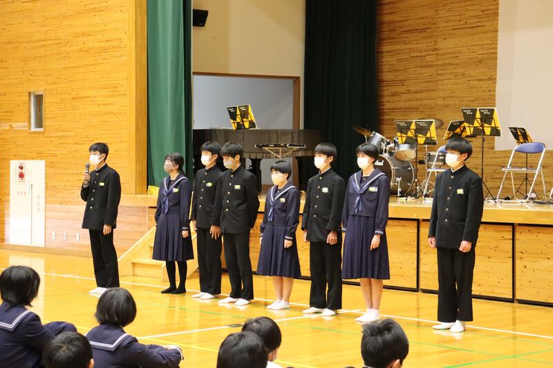 5時間目終了後、中学生の生徒集会がありました。今日は、生徒会新執行部から、令和5年度の生徒会テーマの発表がありました。新執行部のやる気に満ちた凛々しい姿に、生徒全員の気持ちが引き締まった、大変有意義な集会となりました。