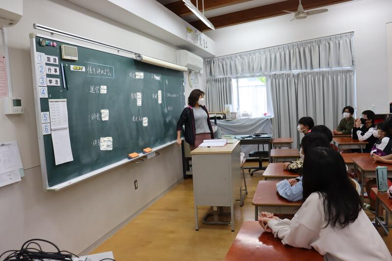 小学2年生は、朝の会の最中でした。黙想で一日がスタートするようです。一生懸命目をつぶって黙想をしています。