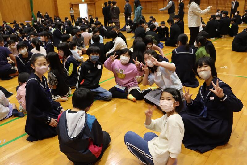 小学生と中学生が一緒にグループをつくります。施設一体型の小中一貫校ならではのほほえましい光景です。小学生の子どもたちは、中学生のおにいさん、おねえさんが大好きです!中学生も、小学生のことを考えた行動をしてくれます。