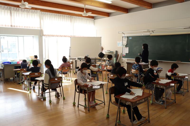 こちらは小学1年生と2年生です。ここでも、ことばについて学習していました。「○○が○○する」たとえば、「うまが はしる」「とりが とぶ」など、つながりを考えながら文をつくっていきます。聞く姿勢、手の挙げ方、発表の仕方が、とっても素晴らしいです!