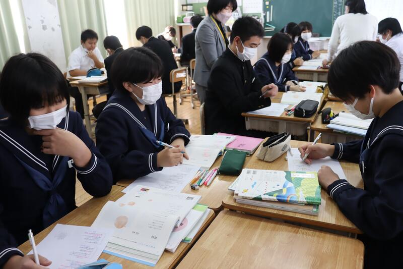 中学1年生の英語の時間です。よーくみると・・・