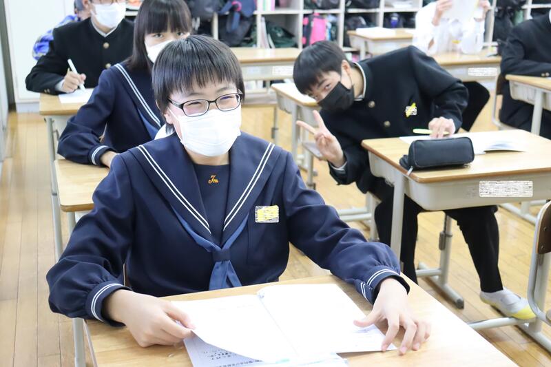 中学3年生は、本当に仲良しで、いつも楽しく学習しています。動画の仕上がりが楽しみです。