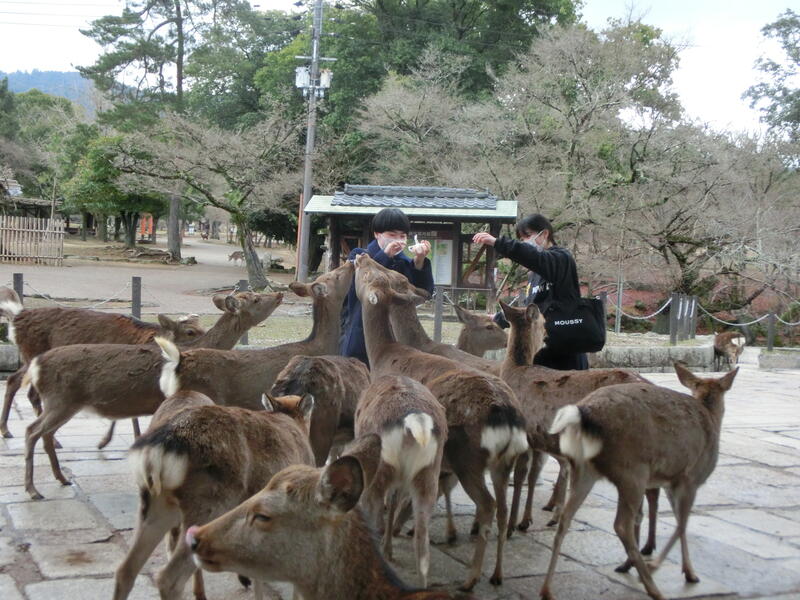 奈良公園に到着。鹿さんの出迎えを受けました。