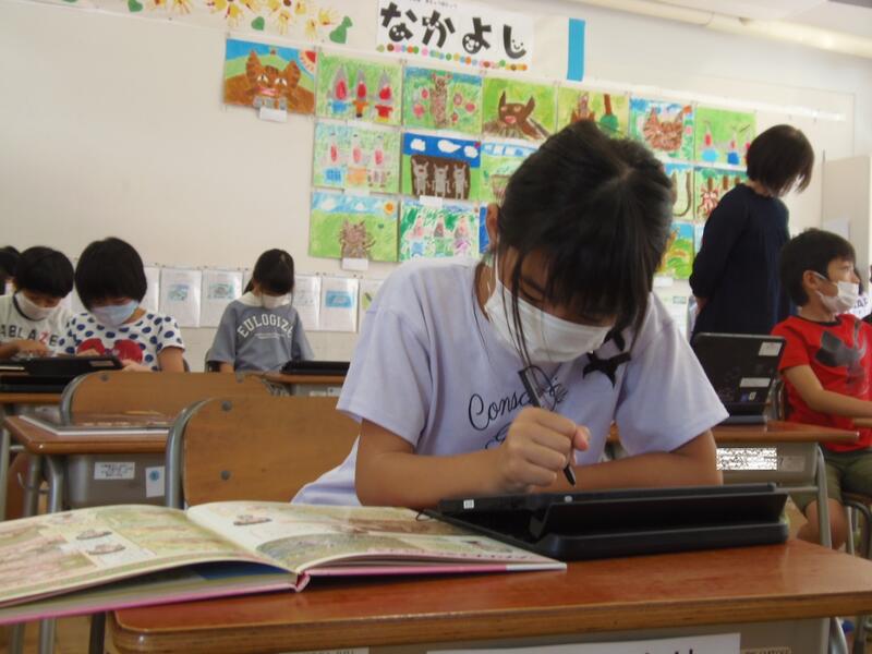 新出漢字の練習をしていました。一文字一文字、字形や書き順について、丁寧に学習していきます。みんな、姿勢がきれい!素晴らしい豊野小1年生です。