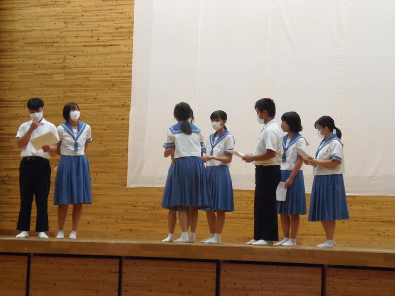 友情、思い出、夢、3年生にピッタリのテーマでした。さすが3年生!演技の工夫や豊かな表現力が光りました。3年生にとっては中学校生活において最初で最後の学習成果発表会となってしまいましたが、精いっぱい楽しみ、一生忘れないステージとなったことでしょう。