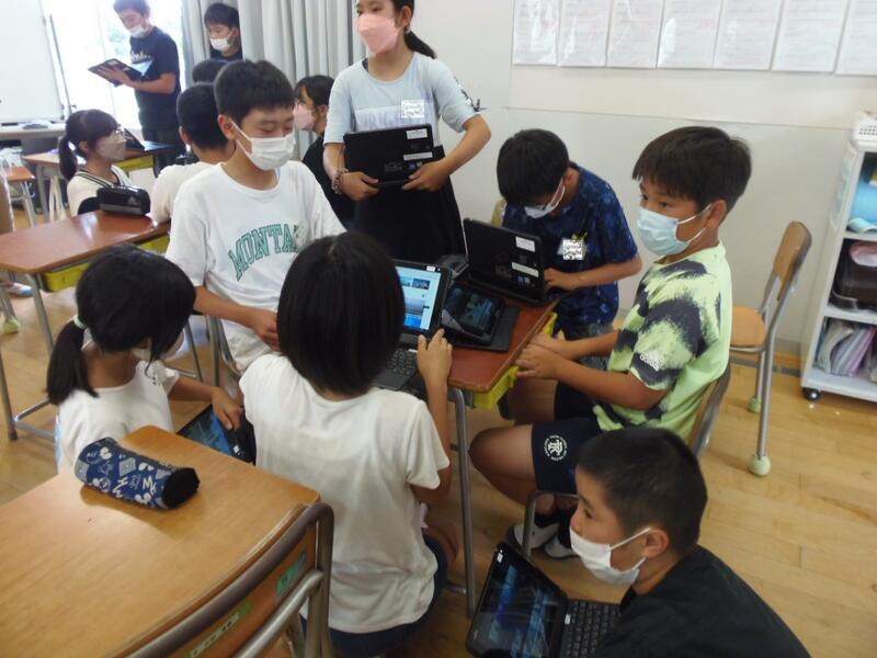 タブレットPCを使って、グループで力を合わせて課題を解いていきます。