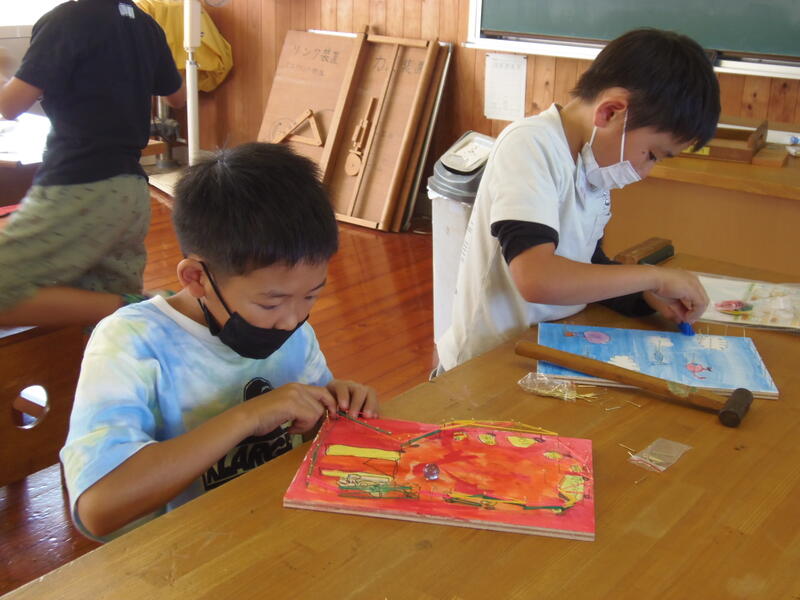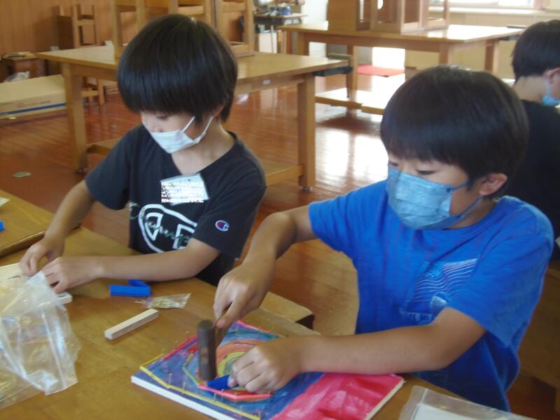 居残りして学習成果発表会で使う小道具づくりにいそしんでいる生徒を発見!とにかく楽しそうでうらやましいです。みなさん、気をつけて帰ってくださいね!
