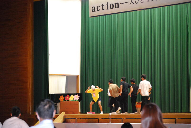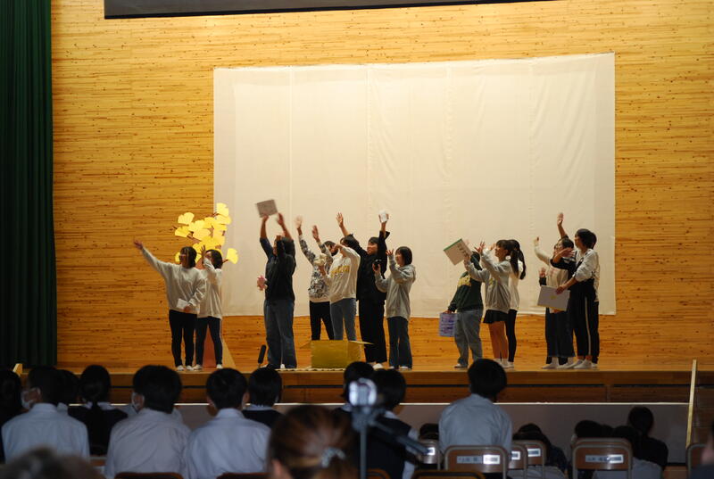 「いじめ」について考えさせられる内容でした。1年生の演技、生き生きとしていました。これからますます力を発揮していくであろう1年生、たのもしく感じました。