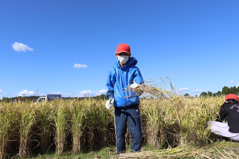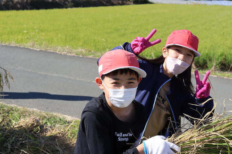 10月25日(火)の小学5年生の稲刈りの様子です。田んぼ一面黄金の稲穂!今年は豊作です。田植えに引き続き、稲刈りを体験させていただきました。米作りを体験して、学んだこと、感じたことがたくさんあったことでしょう。すべての作業を機械にたよらず行っていた時代の方たちの苦労や、様々な便利な道具、機械を生み出してきた人々の英知、農家のみなさんの工夫や情熱を肌で感じることができました。ご協力いただいた稲葉さん、地域のみなさま、本当にありがとうございました!