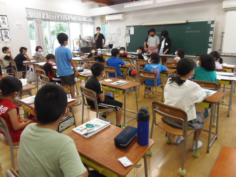 小学生は地区児童会がありました。前期前半の集団登校の振り返りや夏休みのくらしについて、みんなで話し合いました。