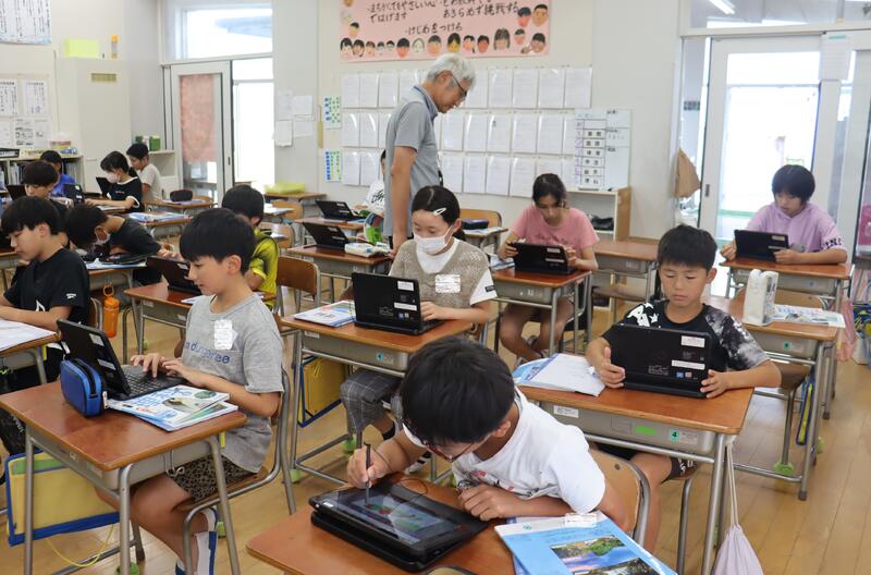 小学6年生は、国語でタブレットを使っていました。使い慣れていて、作業もはやいです。子どもたちの吸収力には驚かされますね。