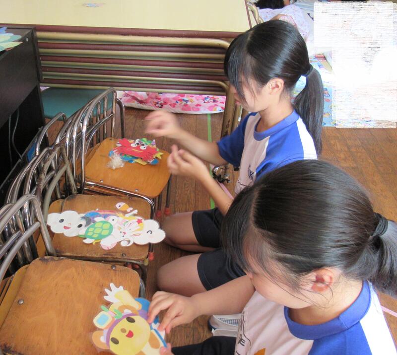 小学6年生は、図工の作品をお互いに鑑賞していました。針金を利用してくるくる動く楽しい作品です。みんなのアイデアに驚きました!多目的ルームに展示されています。みなさん見に来てください。(手を触れないで見てくださいね。)
