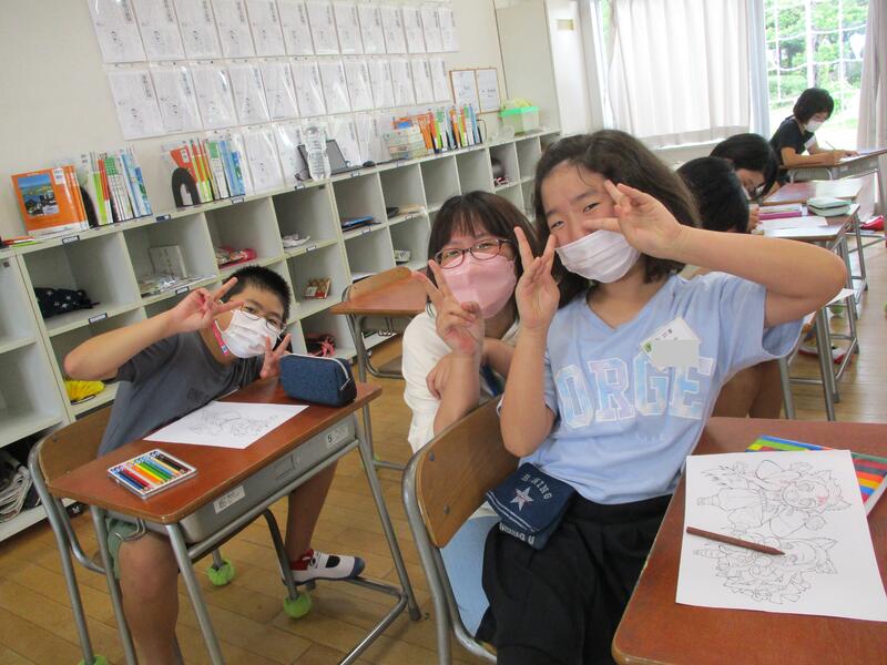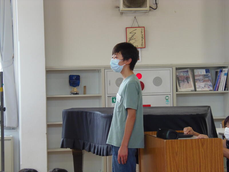 小学6年生は外国語の時間でした。自分の名前、住んでいるところ、好きなことなどを英語でスピーチしました。みんなとても上手です。