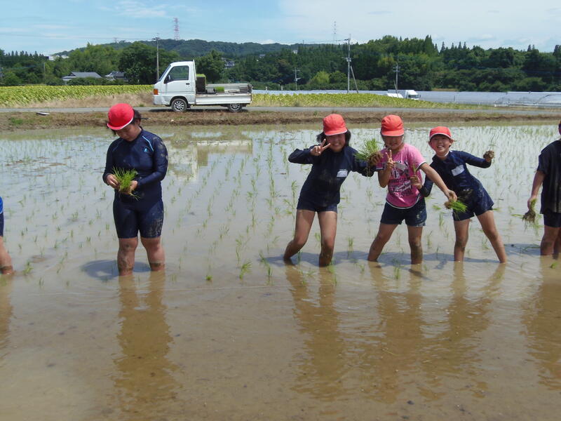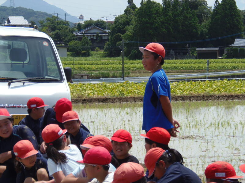 感想発表では、「手で植えると大変。機械は便利だなあと思いました。」「初めて田植えをしたけど、たのしかったです。」など、それぞれに発表することができました。収穫の日が楽しみです。