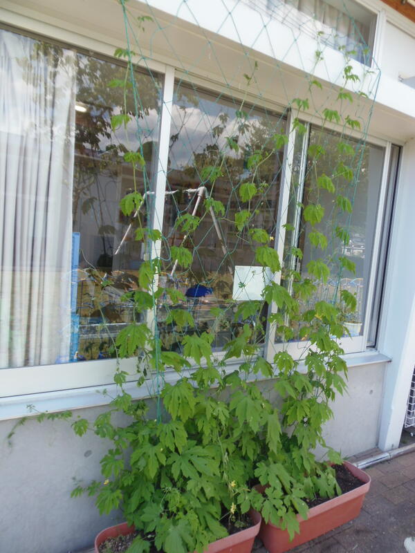 グリーンカーテンもこんなに大きくなりました。夏到来です!