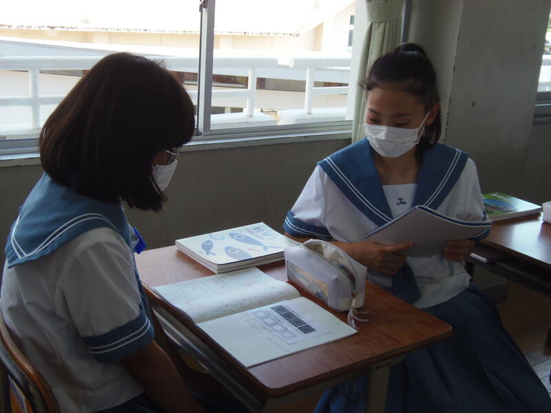 図書室で、中学3年生の国語の授業が行われていました。場所を変えて新鮮な感じです。