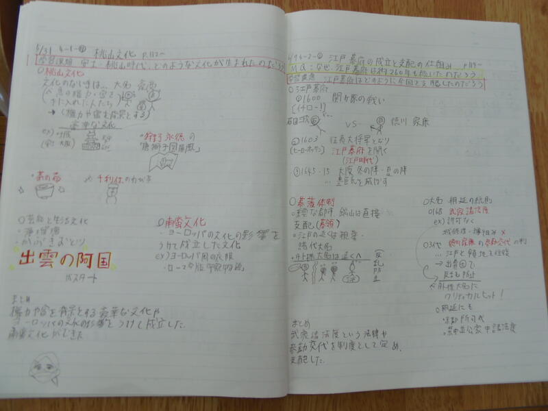 中学1年生の社会の授業です。日本の歴史について、平山先生のお話をみんな熱心に聞いています。いつも元気な1年生、発言も活発です。