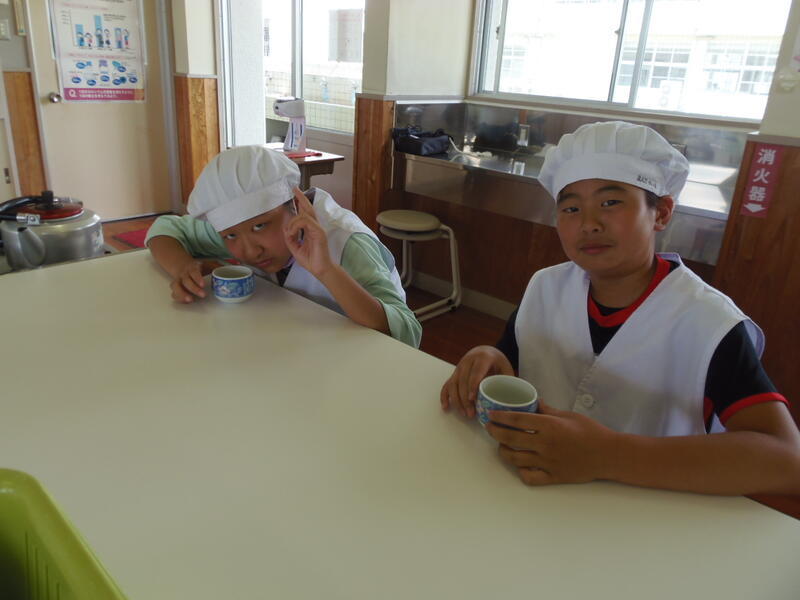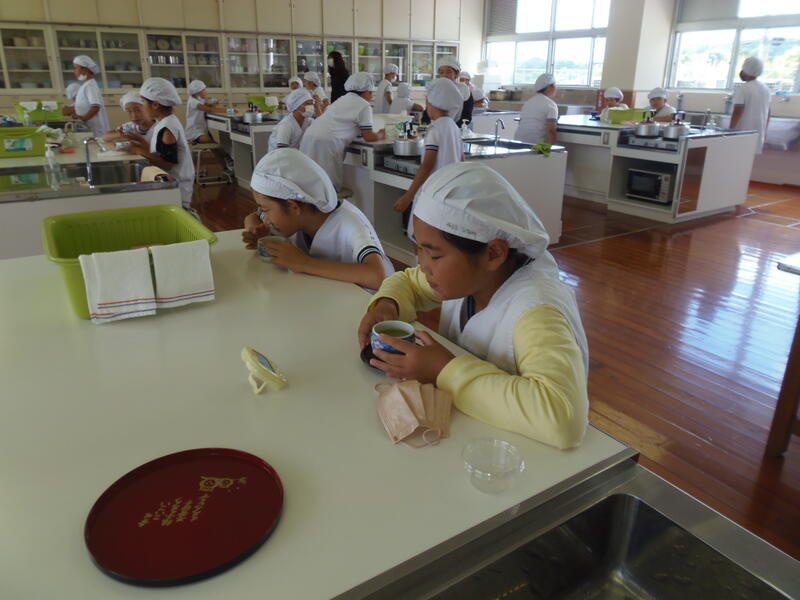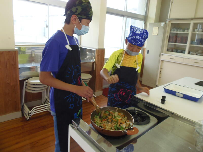 今日は6年生が調理実習をしていました。今日のメニューはスクランブルエッグ、パン、きゅうりとトマトの盛り合わせです。一人ずつ、自分の分を調理しました。友達が応援してくれています。