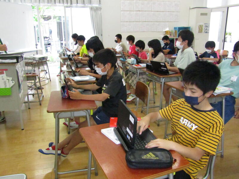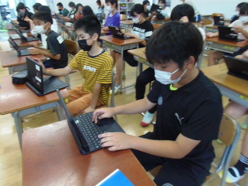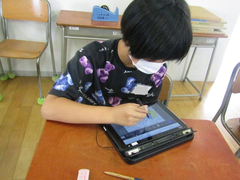 小学6年生の教室をのぞくと、タブレットPCを使ってレポート作成中でした。