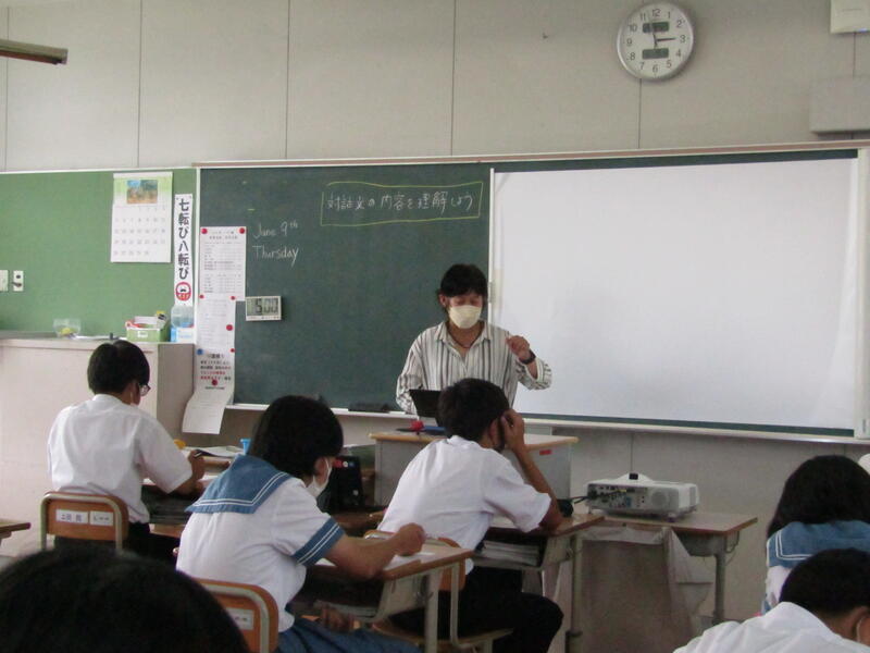 中学2年生は中村祐子先生、ケビン先生と一緒に英語の学習です。