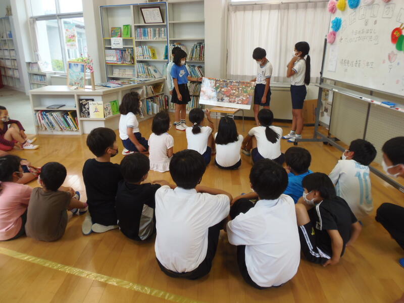 さて、今日は、昼休みに情報発信委員会のお話会がありました。今日の担当は5年生、大型絵本を上手に読んでくれました。小学生だけでなく、中学生も聞きに来てくれました。