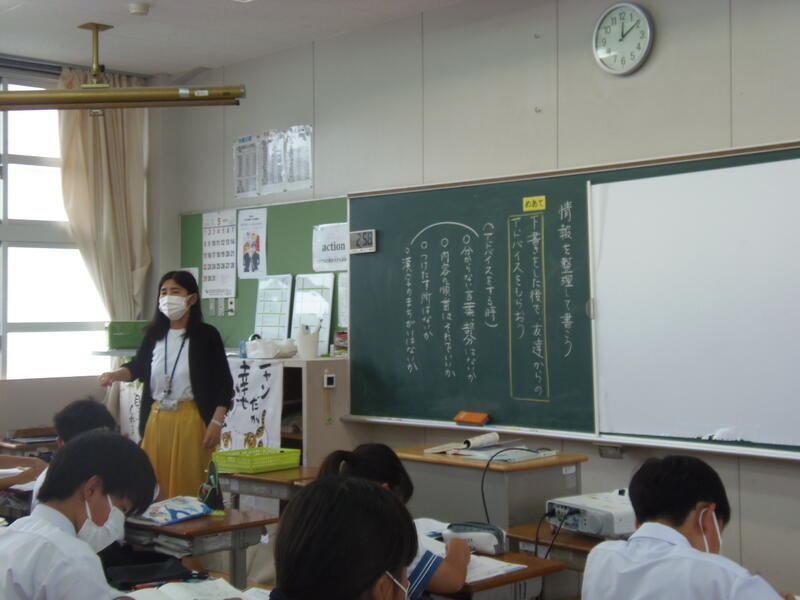 中学校の道徳の授業の様子です。中学校においては、学年部のすべての職員が道徳の授業を行っています。