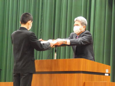 在校生を代表して、2年生の佐渡陸くんが立派な送辞を発表してくれました。