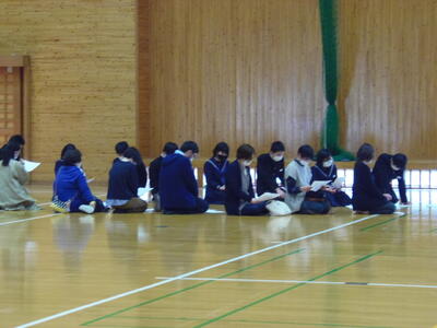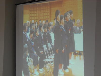 前期選抜等で合格内定をいただいた生徒たちが、製作した思い出DVDを見て、3年間を振り返りました。