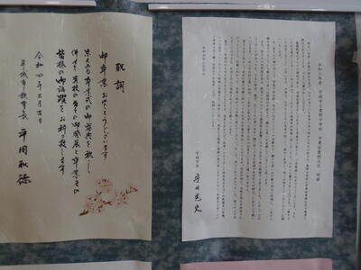 宇城市長守田憲史様、宇城市教育長平岡和徳様、前豊野小中学校長本村由紀博様をはじめ、たくさんの方々から祝電・祝詞をいただきました。ありがとうございました。