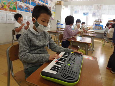 授業参観で保護者の方々に見ていただく予定(ビデオ)の合奏の練習をしていました。
