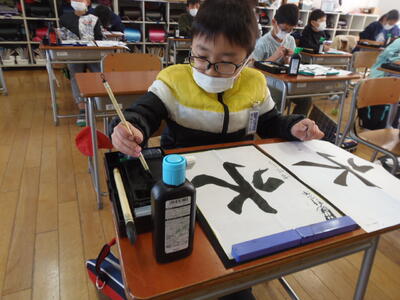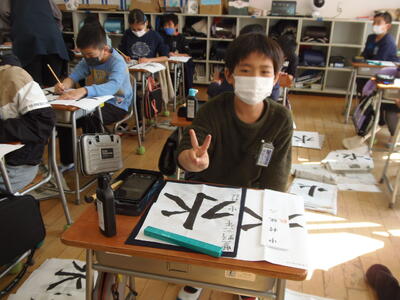 「水」を書いていましたが、みんなとても上手でした。基礎をしっかり学んでいるから上手にかけるんですよということでした。ボランティアで教えていただいた西村先生のお陰です。ありがとうございます。