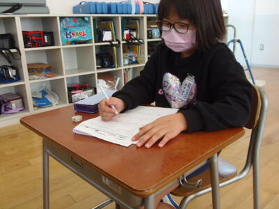 小学2年生は、算数の授業で1年間のまとめのプリントに挑戦していました。