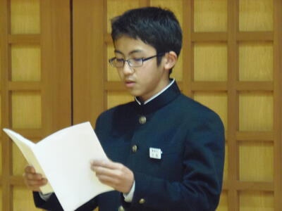 答辞は、生徒会長の舛井悠悟君でした。その内容に感動しました。