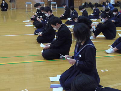 3月3日(木)中学3年生修了式と3年生を送る会の様子