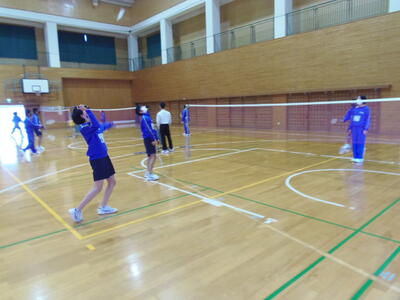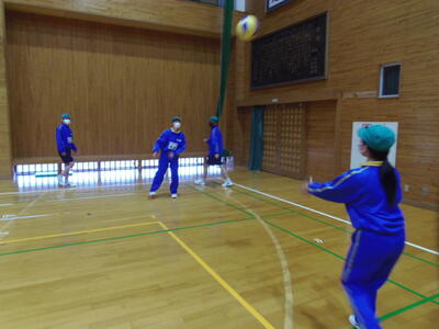 ソフトバレーボールの集団パスの練習をしていました。どうしてもボールが軽いので片手にならないように気をつけながら練習していました。