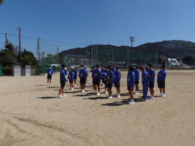 青空の下、中学2年生が、昼休みにソフトボールのクラスマッチでクラスの親睦を図りました。
