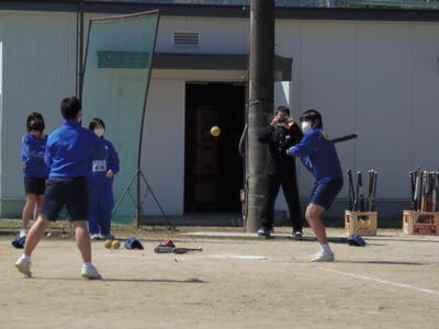 女子の生徒の中には、外野まで飛ばす生徒もいました。