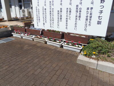 昨日、在校生で準備しましたが、今朝は、小学6年生が体育館周辺やプランターの花の手入れをしてくれました。