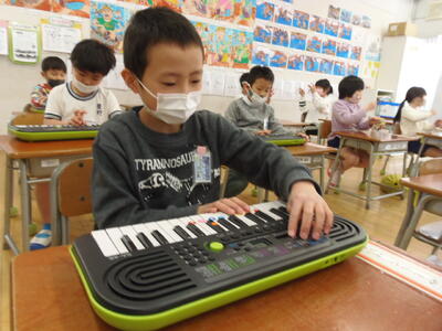 授業参観で保護者の方々に見ていただく予定(ビデオ)の合奏の練習をしていました。