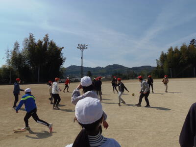 女子の生徒の中には、外野まで飛ばす生徒もいました。