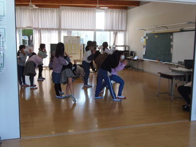 すいしょうの教室では、女子児童が集まってノリノリでダンスの練習をしていました。