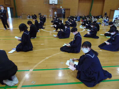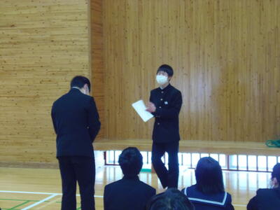 3月3日(木)中学3年生修了式と3年生を送る会の様子