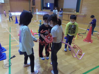 交差跳びや二段跳びを連続して上手に飛んでいました。