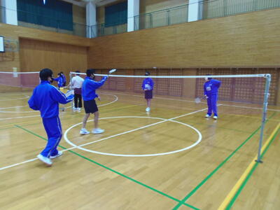 ソフトバレーボールの集団パスの練習をしていました。どうしてもボールが軽いので片手にならないように気をつけながら練習していました。