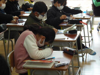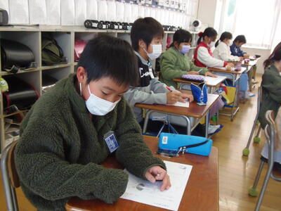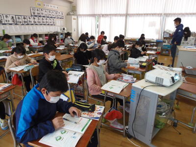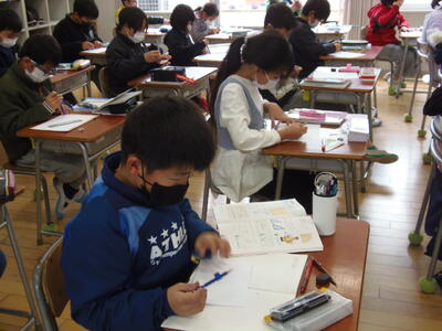4年生は、理科の授業でした。学んだ内容を振り返った後、確認テストに挑戦していました。
